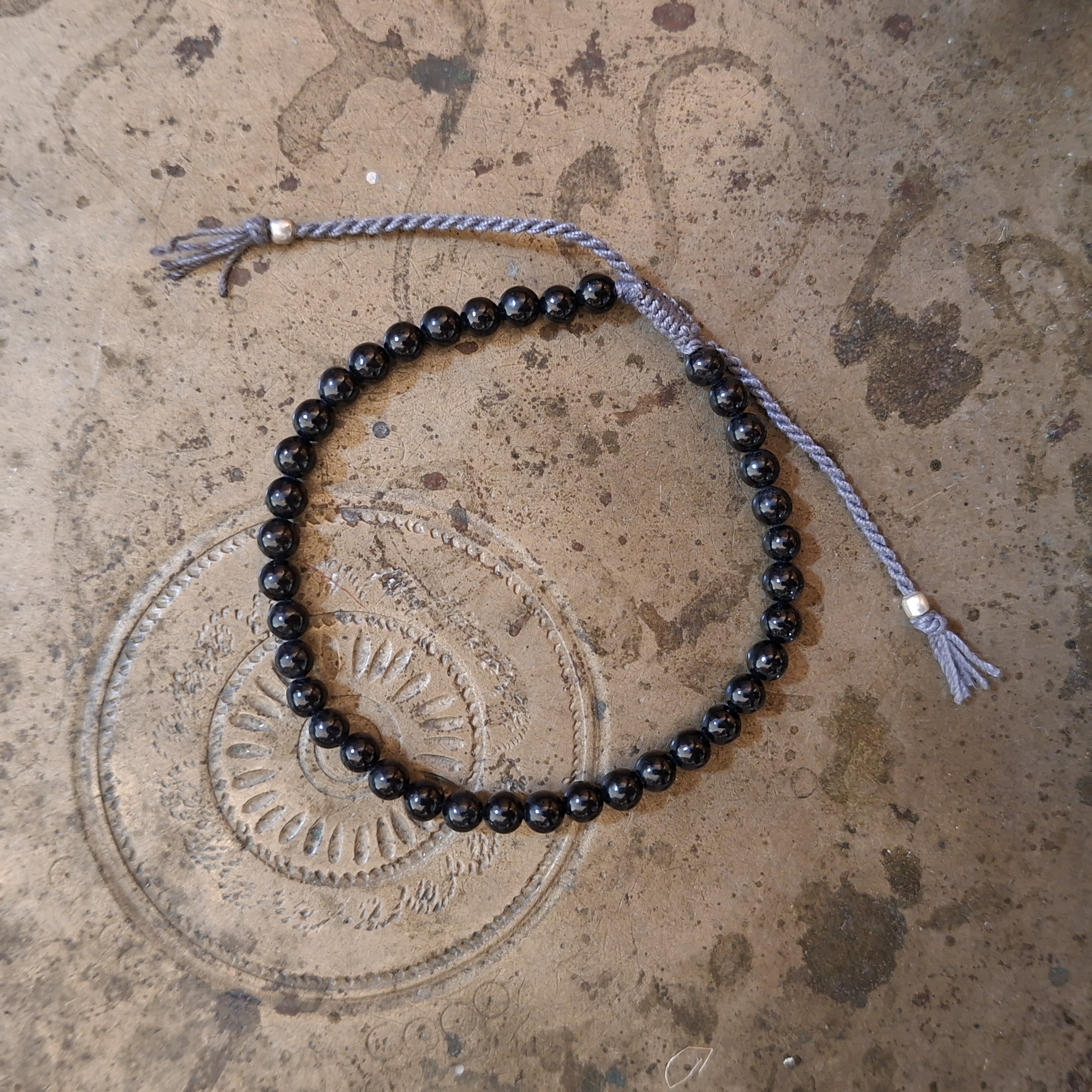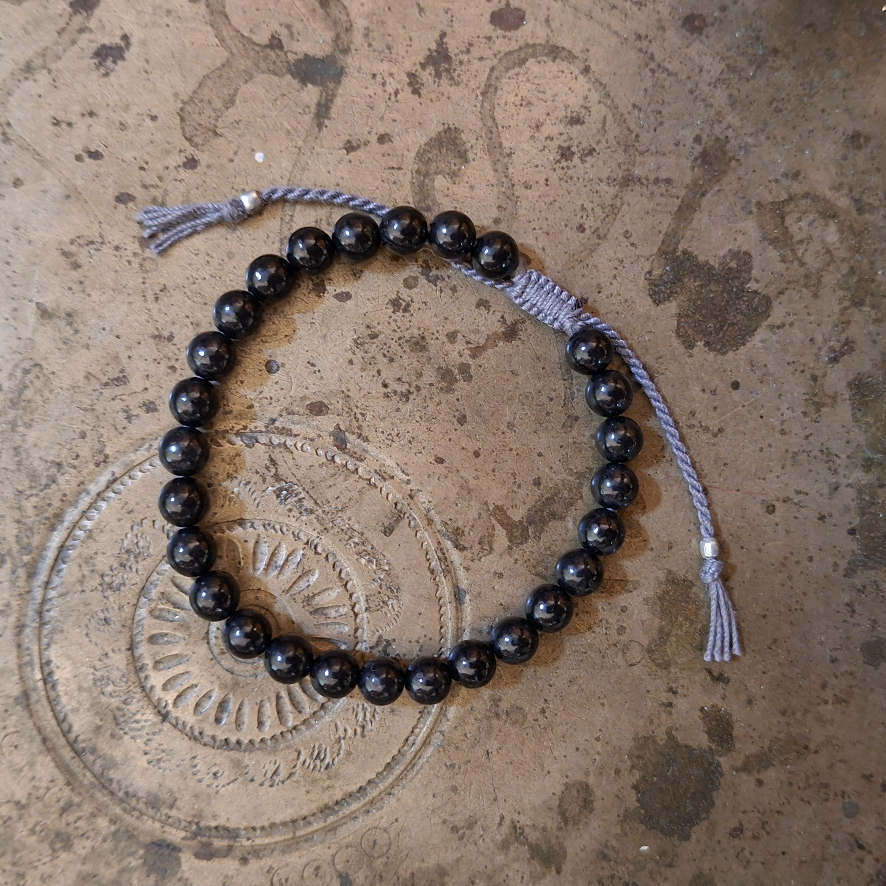 Bracelet with a sliding knotted closure and black Jade beads. Jade is a protecting stone.