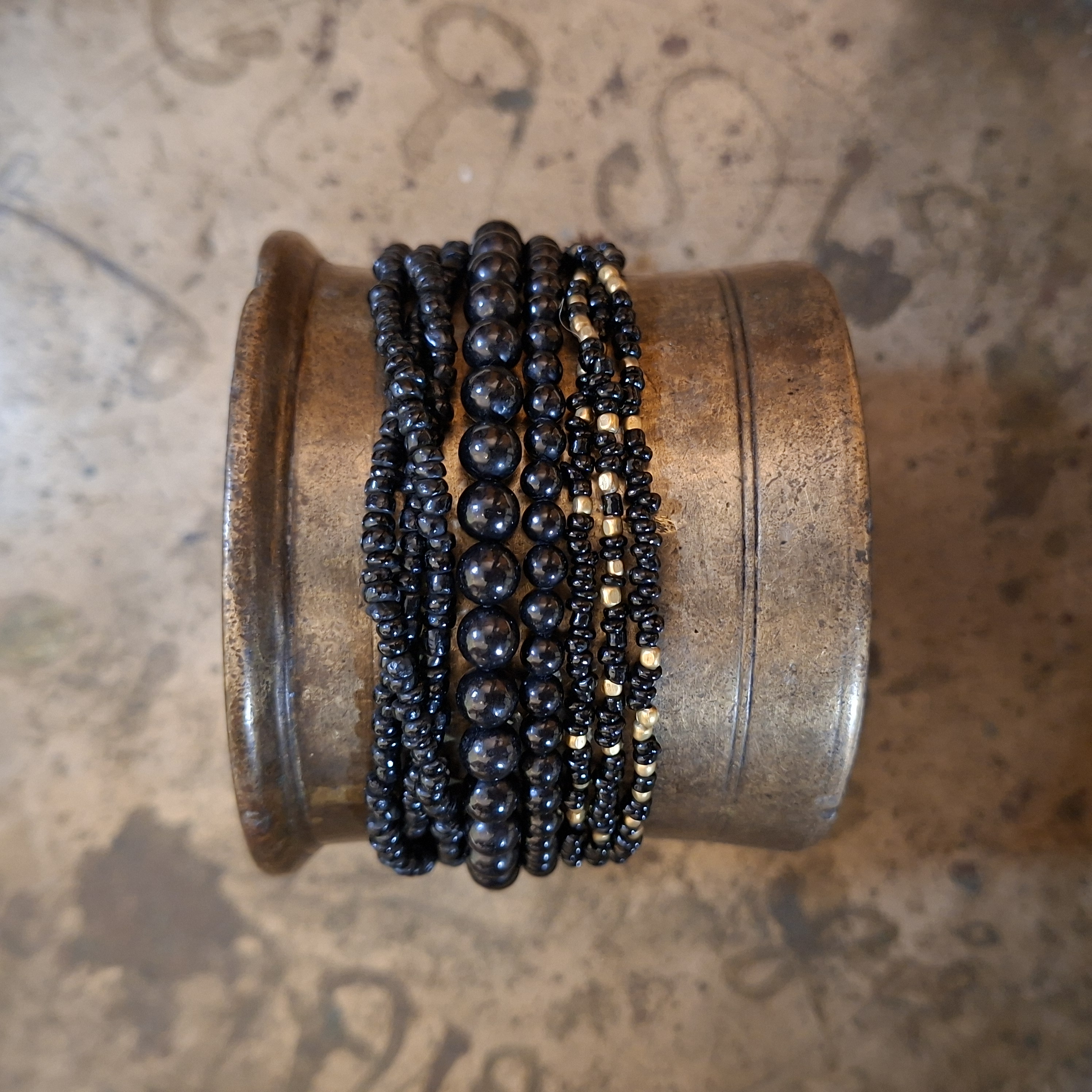 The bracelets are made by women in Nepal. The beads are strung on cotton threads. The knotted sliding closures in the bracelets makes it suitable for almost every wrist. They measure 16 - 22 cm.