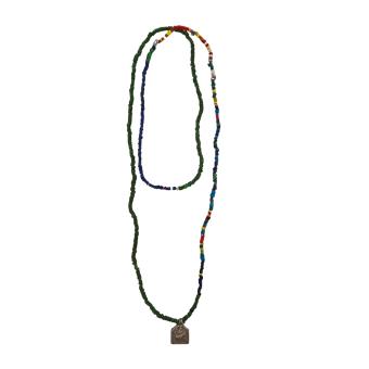 These necklaces are handmade by the craftswomen from Beads for Life (Nepal). They are made with re-used glass beads from jewellery originally worn by Bonda women. The Bonda tribes live in the hills of Odisha, India. The women only wear a loincloth. Their torsos and heads are covered in strings of colourful beads.
