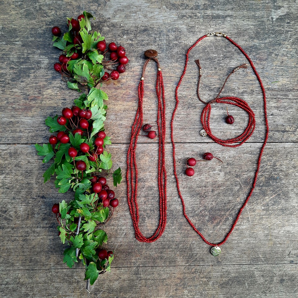 Het collier is 45 cm lang en wordt geleverd met een presentatie-kaart van handgeschept papier.